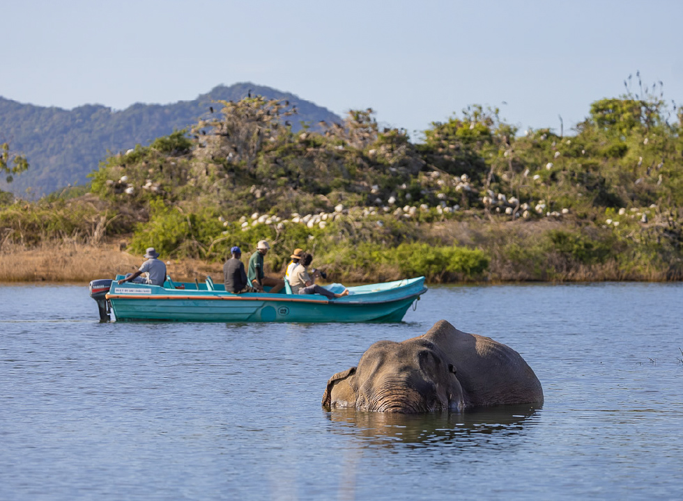 One of Sri Lanka’s most off-beat parks, Gal Oya is unique for its boat safaris across Senanayake Samudraya, the country’s largest reservoir. If you’re lucky, you might witness elephants swimming between islands, mugger crocodiles basking on the shore, or eagles swooping overhead. Forested hills and grasslands add to the park’s beauty, with leopards, bears, and deer also present.