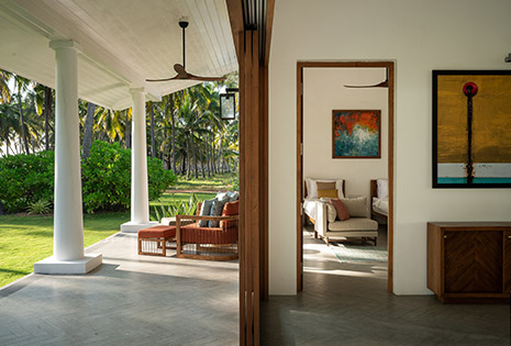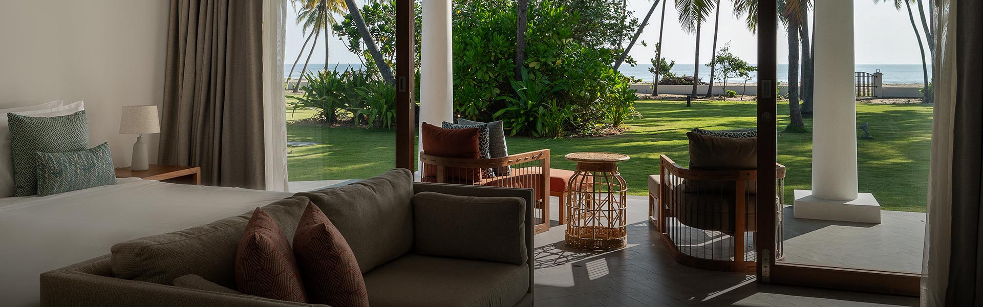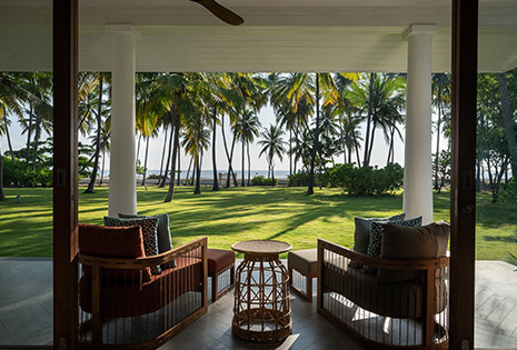 Perched on the upper floor of the Main House, this luxurious suite features a balcony with ocean views.