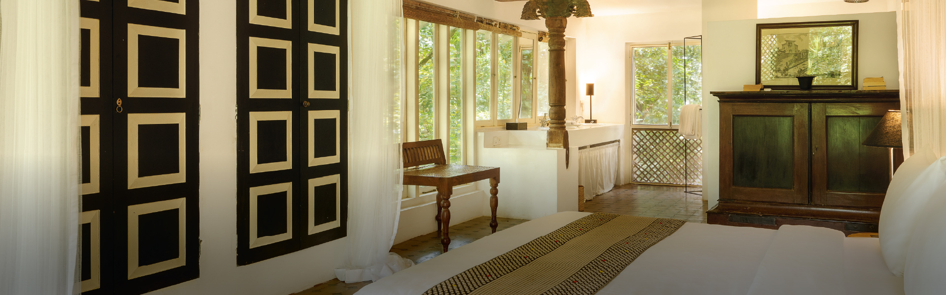 Our largest bedroom used to house Bawa’s art collection, and is privately located near a courtyard, perfect for honeymooners.