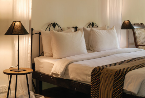 This spacious and opulently decorated suite – formerly Bawa’s guest suite – sits opposite the Geoffrey Bawa Suite, within the main house.